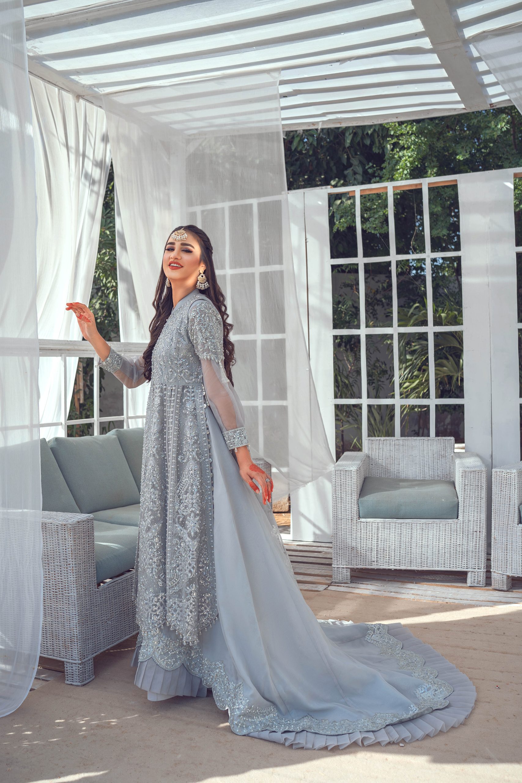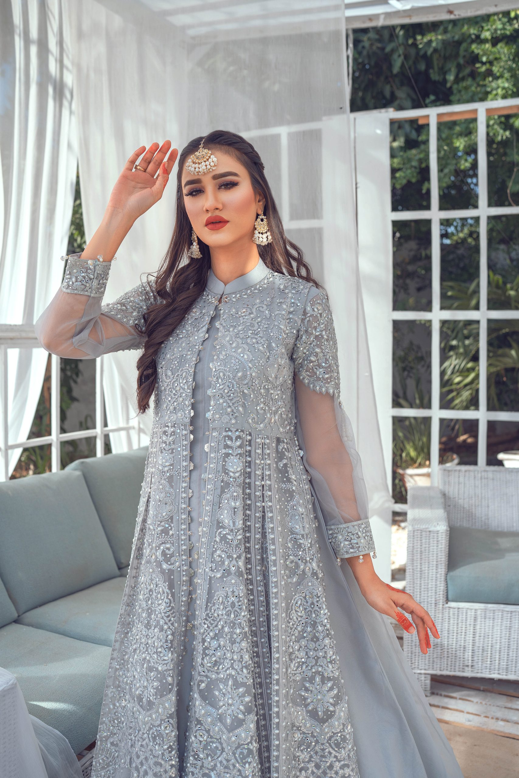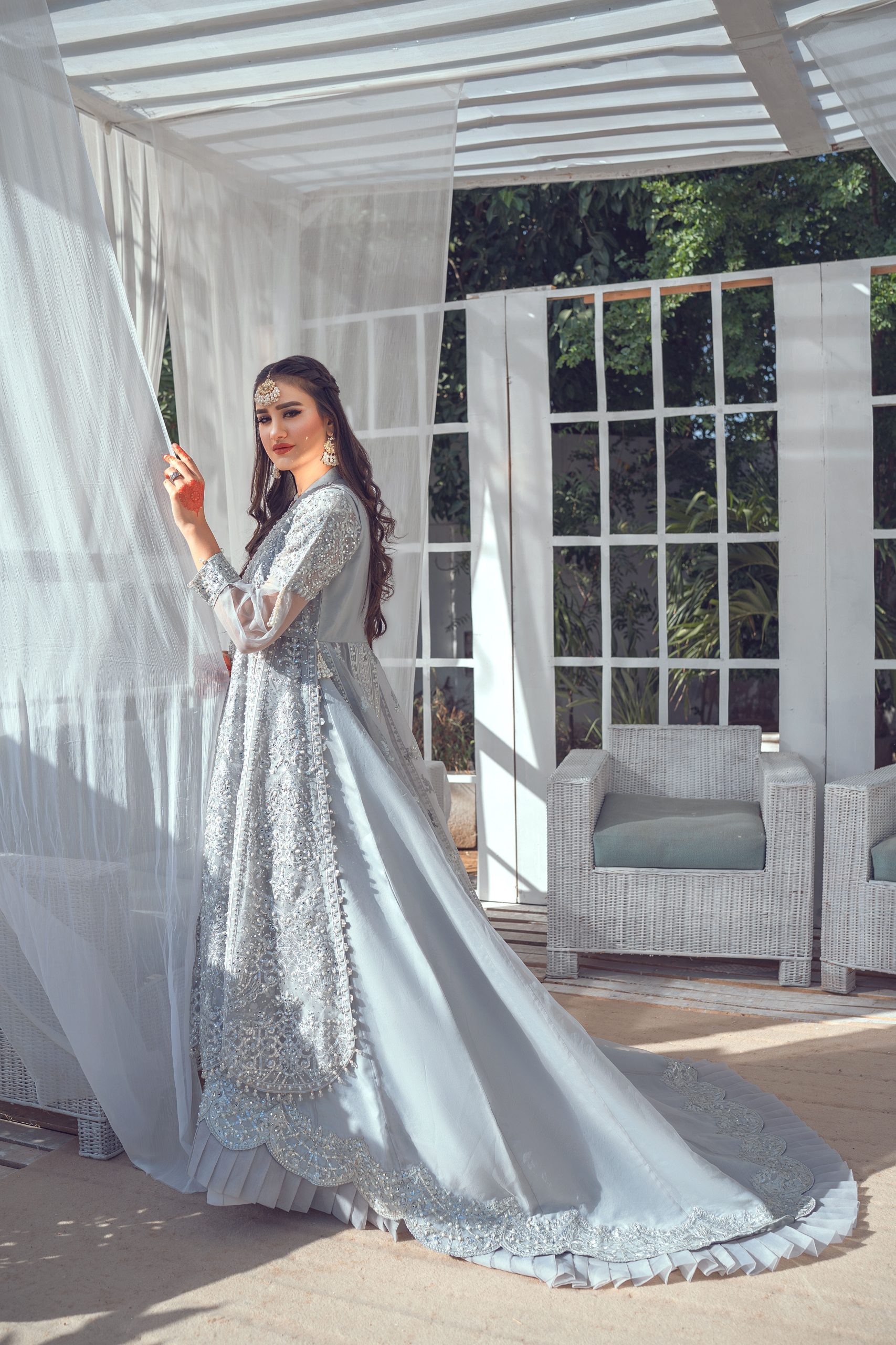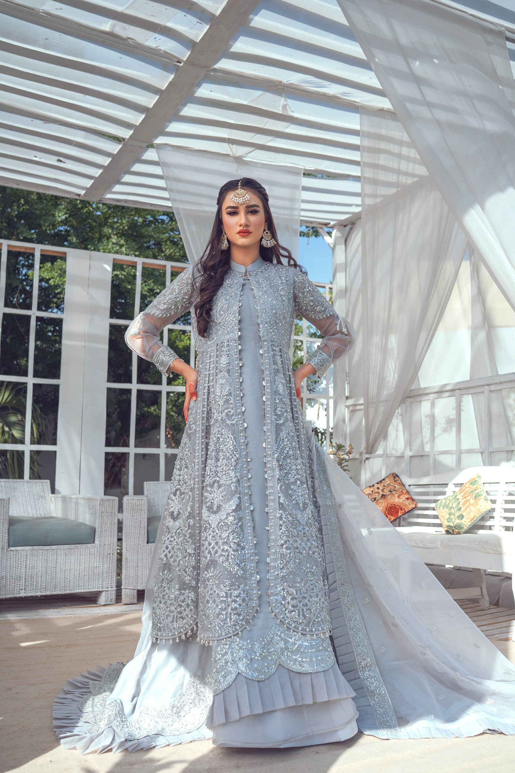 2 Piece Macce Macce: Net Fabric embroidered front back with handwork of zari, kora, dabka n mirror Dupatta: Net Fabric with two sides embroidered border with handwork